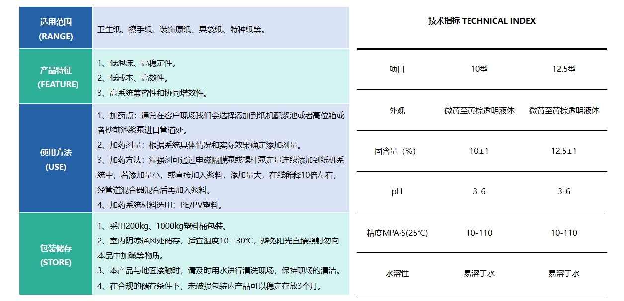 HQ-SN868 濕強(qiáng)劑,是一種陽離子聚多胺酰胺環(huán)氧氯丙烷?脂,本品不但具有較好的濕強(qiáng)效果,而且環(huán)境污染小,無毒害作用。與傳統(tǒng)MF樹脂和UF樹脂相比,它不僅可以在中堿性條件下熟化,而且在提高紙張濕強(qiáng)度的同時(shí),并不會(huì)損失紙張的柔軟性、吸收性,特別是生活用紙。